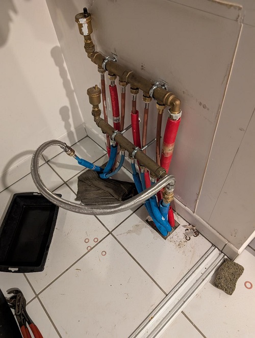 Réparation d’une installation existante avec une répartition optimisée des réseaux d’eau pour une meilleure circulation de l’eau et un meilleur débit. Travail soigné et conforme aux normes actuelles.